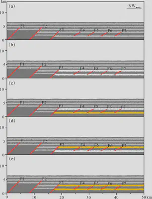 博格达山北缘褶皱冲断带以横向分段、纵向分层、多期构造变形叠加、先存构造发育为主要特征,发育有中侏罗统西山窑组和下侏罗统八道湾组两套滑脱层,为探究这两套滑脱层内聚力强度差异及先存构造对冲断带新生代构造变形的影响,本次研究采用离散元数值模拟方法,在布设先存构造的基础上设计了无滑脱层模型和不同内聚力强度组合的双滑脱层模型共5组数值模拟实验。实验结果表明:双滑脱层内聚力强度相同时,上滑脱层在应力传播中占据优势;双滑脱层内聚力强度不同时,应力会优先沿弱内聚力滑脱层传递,且当下滑脱层内聚力较弱时,上滑脱层可能不发挥作用。通过对比实验结果与实际地质剖面,认为先存构造控制了冲断带构造变形的总体样式,而两套滑脱层共同控制了冲断带纵向上的变形解耦,上部滑脱层内聚力弱于下部滑脱层是影响研究区新生代构造变形的关键性因素。